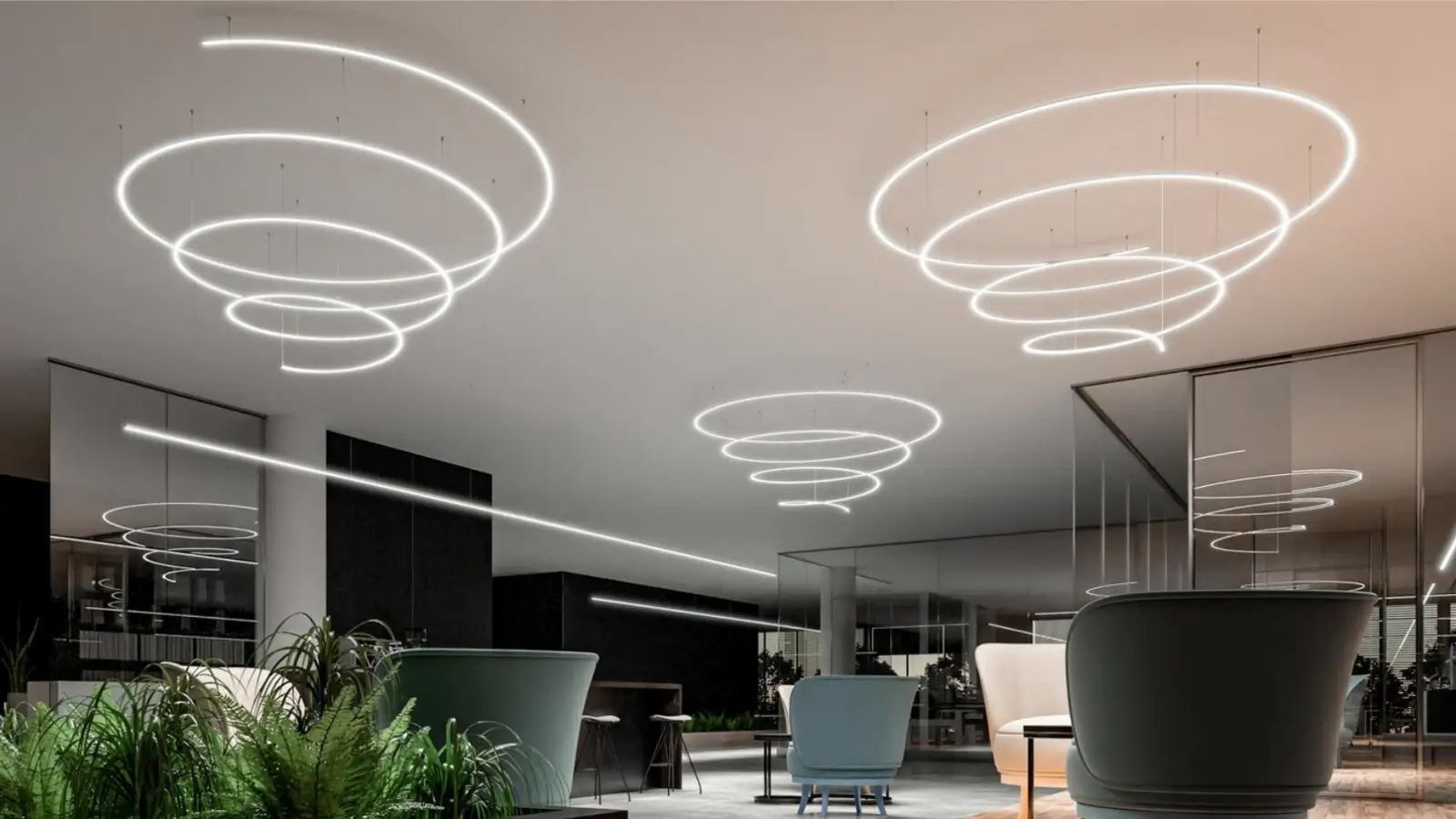 Recessed lighting, also known as pot lights or downlights, is ideal for areas where you need discreet, ambient lighting. This type of lighting is great for office spaces, hallways, and commercial showrooms, offering a sleek, modern look without taking up space.